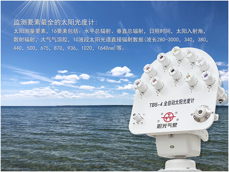 TBS-4全自動(dòng)太陽(yáng)光度計(jì)為高精度野外太陽(yáng)和天空輻射測(cè)量?jī)x器,不但可以測(cè)量十個(gè)波段的太陽(yáng)直接輻射,還可以測(cè)量太陽(yáng)的總輻射、散射輻射、日照時(shí)數(shù)、太陽(yáng)高度角、大氣氣溶膠厚度、天空光等諸多要素,并可以通過GPS實(shí)時(shí)定位追蹤。還具有易攜帶安裝,自動(dòng)瞄準(zhǔn),太陽(yáng)能供電,無(wú)線組網(wǎng)云端監(jiān)測(cè),數(shù)據(jù)自動(dòng)傳輸?shù)忍攸c(diǎn)。它將機(jī)器人控制技術(shù)與輻射測(cè)量技術(shù)完美結(jié)合,采用了太陽(yáng)光追蹤+旋轉(zhuǎn)角度測(cè)量+輻射光譜測(cè)量+GPS 衛(wèi)星定位追蹤等綜合應(yīng)用技術(shù)。它是當(dāng)今應(yīng)用最廣、功能最全、權(quán)威性最高的太陽(yáng)光度計(jì)儀器。主要用于測(cè)量太陽(yáng)和天空在可見光和近紅外的不同波段、不同方向、不同時(shí)間的輻射亮度,來推算大氣氣溶膠、水汽、臭氧等成分的特性。用于大氣環(huán)境監(jiān)測(cè),衛(wèi)星校正等應(yīng)用。