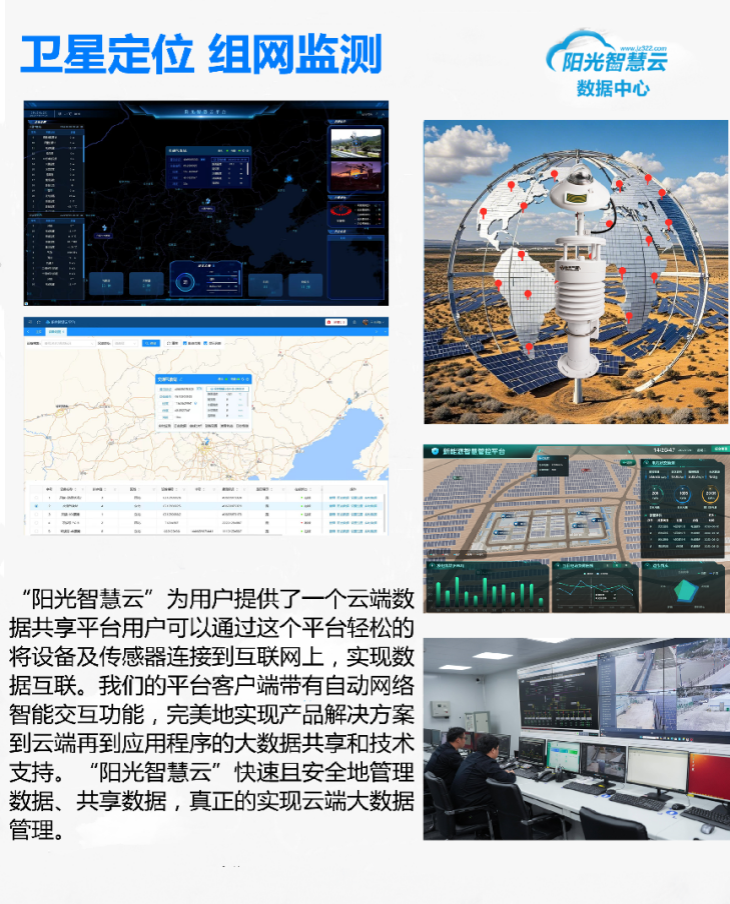 2.太陽(yáng)能資源評(píng)估:設(shè)備可用于太陽(yáng)能資源的評(píng)估和研究,為用戶(hù)提供全面的氣象數(shù)據(jù)和太陽(yáng)輻射數(shù)據(jù),為太陽(yáng)能項(xiàng)目的選址、設(shè)計(jì)和運(yùn)行提供科學(xué)依據(jù)。